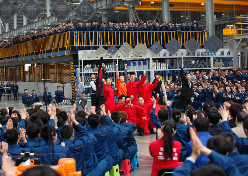在景津装备股份有限公司组装车间,节目组先后上演多个精彩节目,现场掀起阵阵高潮。焦文玉、袁敬华等全国五一劳动奖章获得者参加节目录制。节目将于“五一”期间在央视播出。