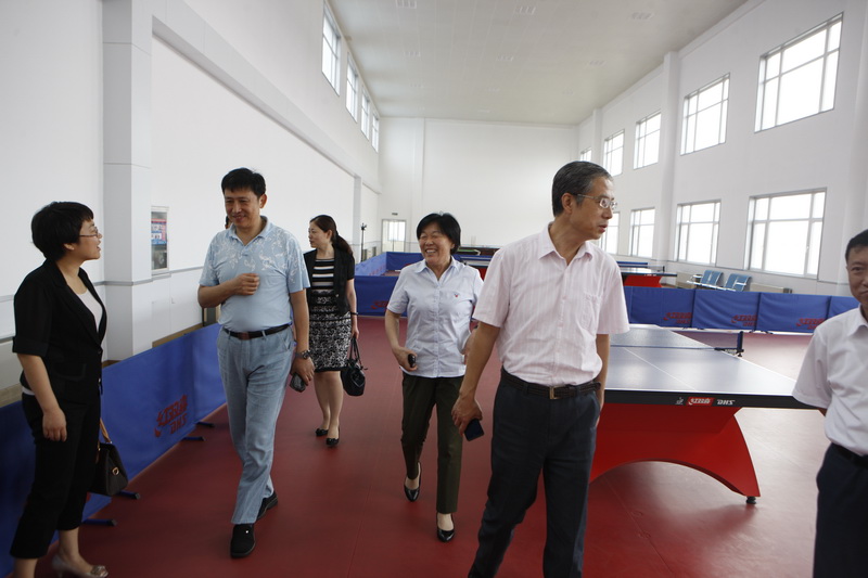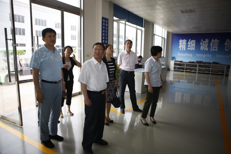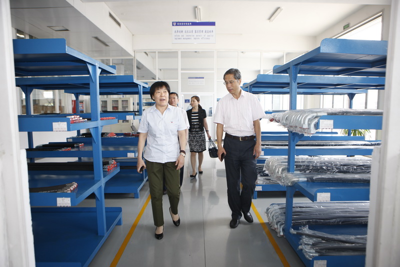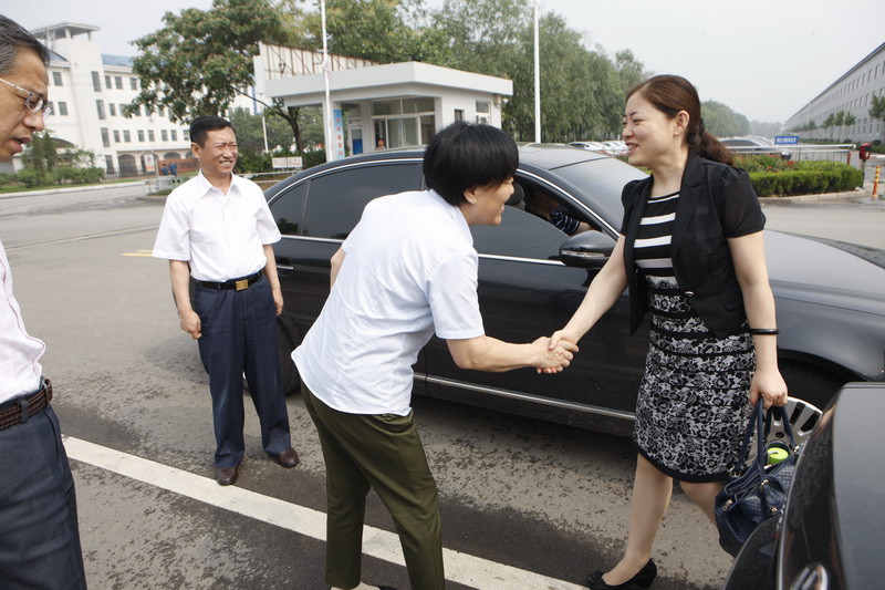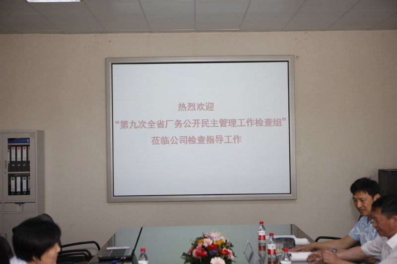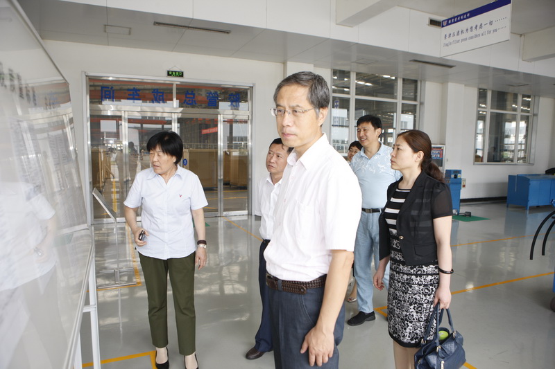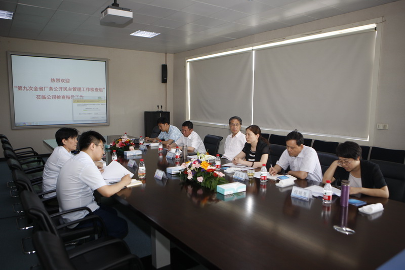 第九次全省厂务公开民主管理工作检查组来景津视察,景津集团工会主席高俊荣陪同参观。