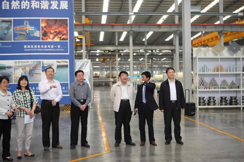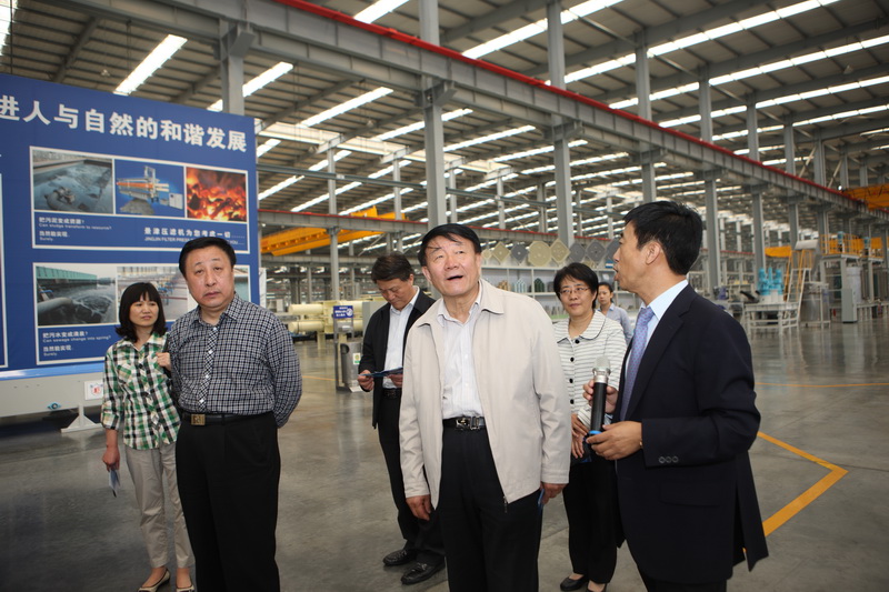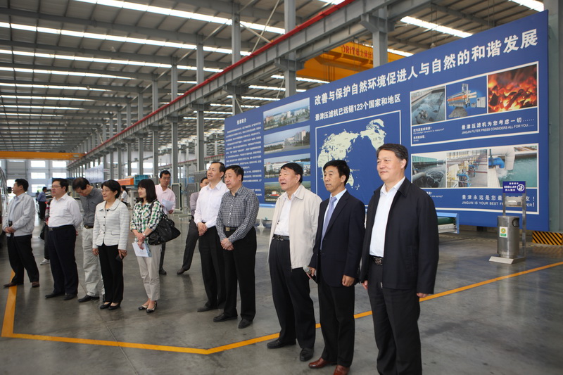 全国人大常委、民进中央副主席王佐书、民进省委副主委兼秘书长郭永军一行来德州景津集团参观,集团总经理闰兴业陪同参观